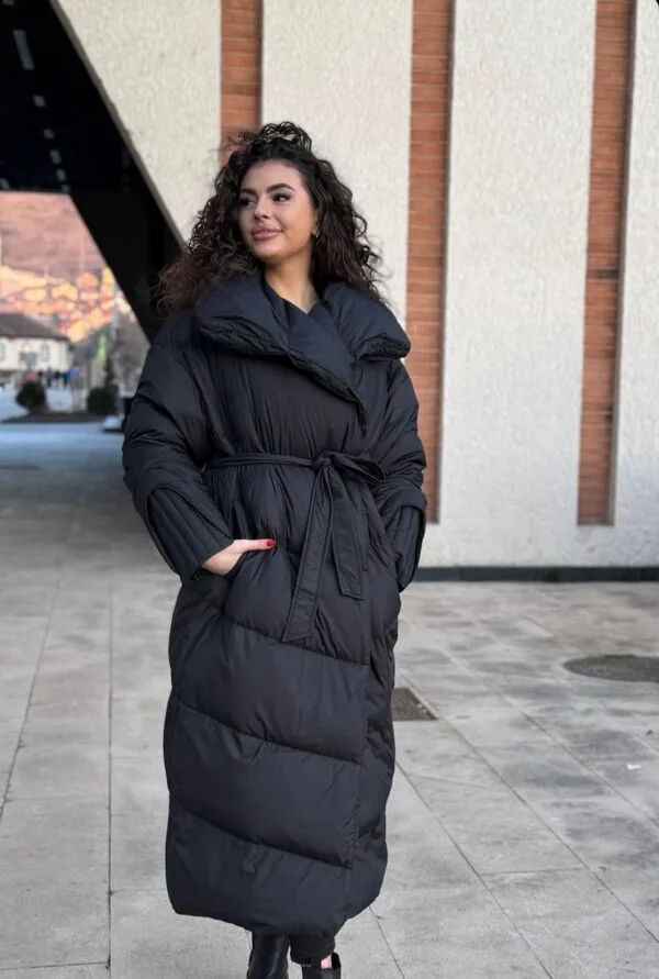 Model dužine do ispod kolena pruža potpunu zaštitu od vetra i hladnoće, dok pojas u struku naglašava siluetu i dodaje dašak ženstvenosti. Zahvaljujući svom jednostavnom, ali efektnom kroju, lako se kombinuje i uz elegantne komade i uz ležerniji stil.