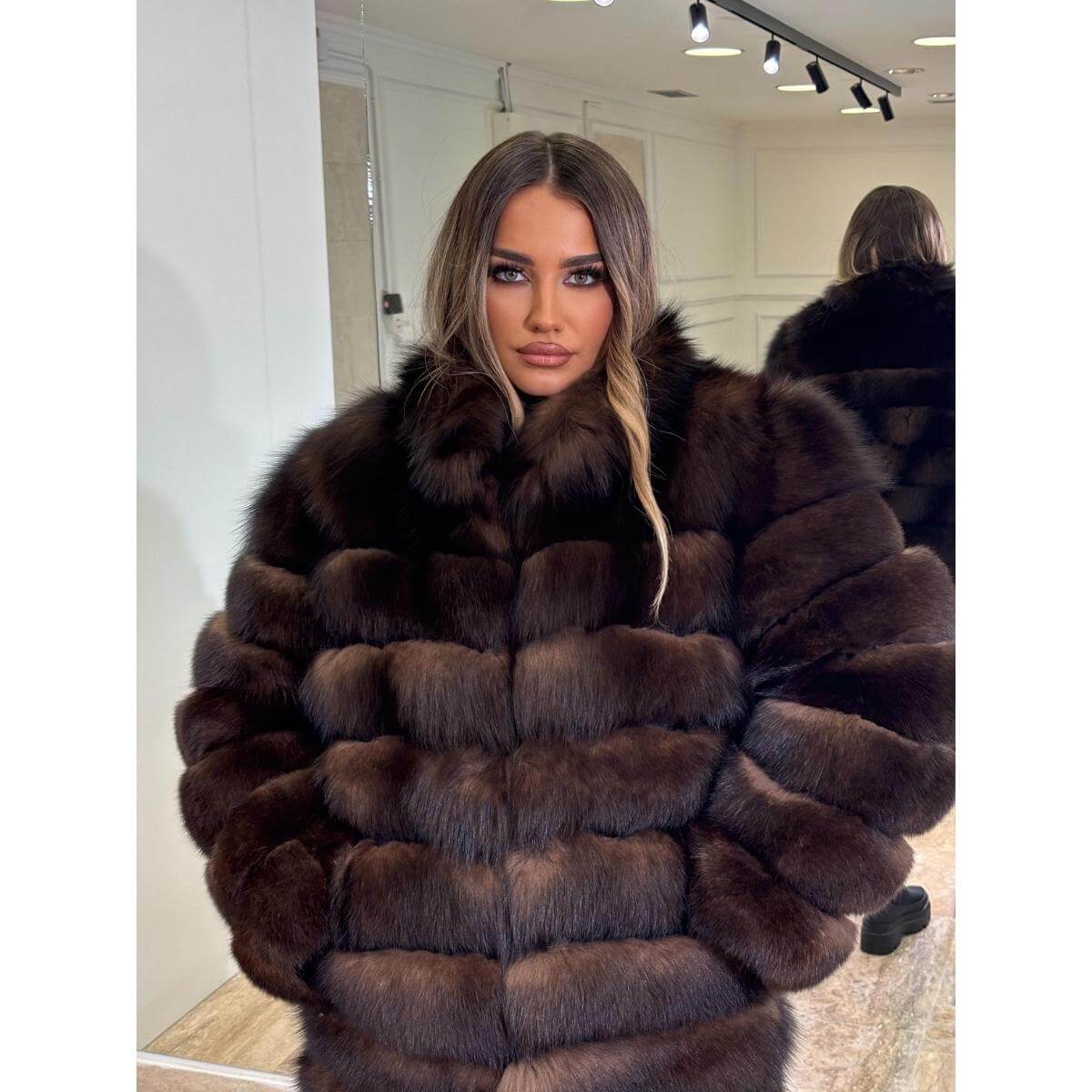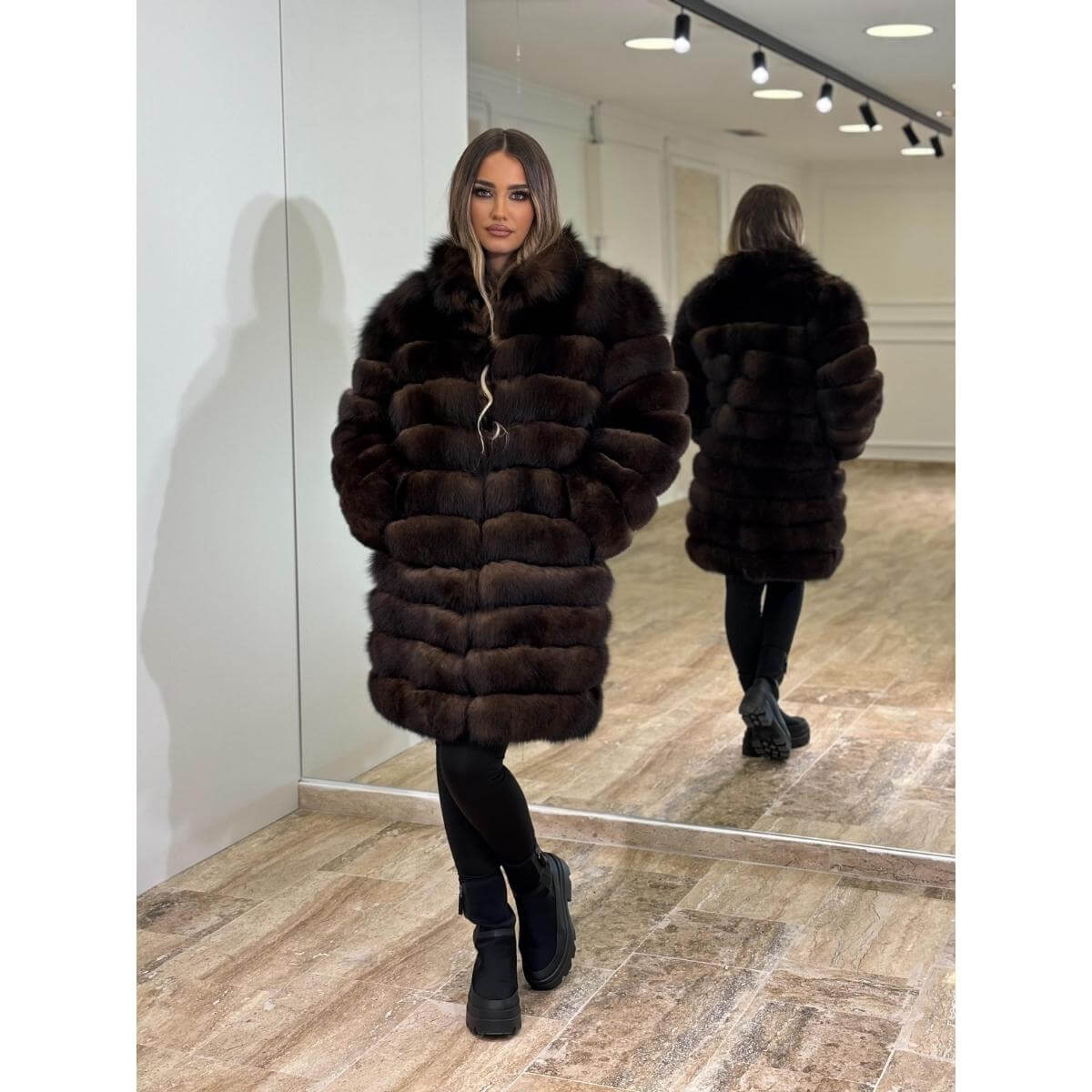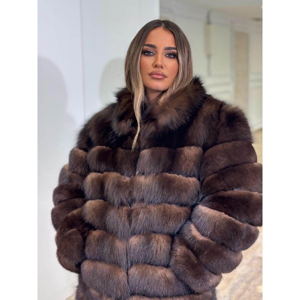 Svetlija nijansa unosi svežinu i luksuz u svaku odevnu kombinaciju, dok volumen i raskoš krzna naglašavaju sofisticiran i moderan izgled. Model 5u1 omogućava različite načine nošenja, pa je praktičan izbor za dame koje vole da kombinuju udobnost i eleganciju.