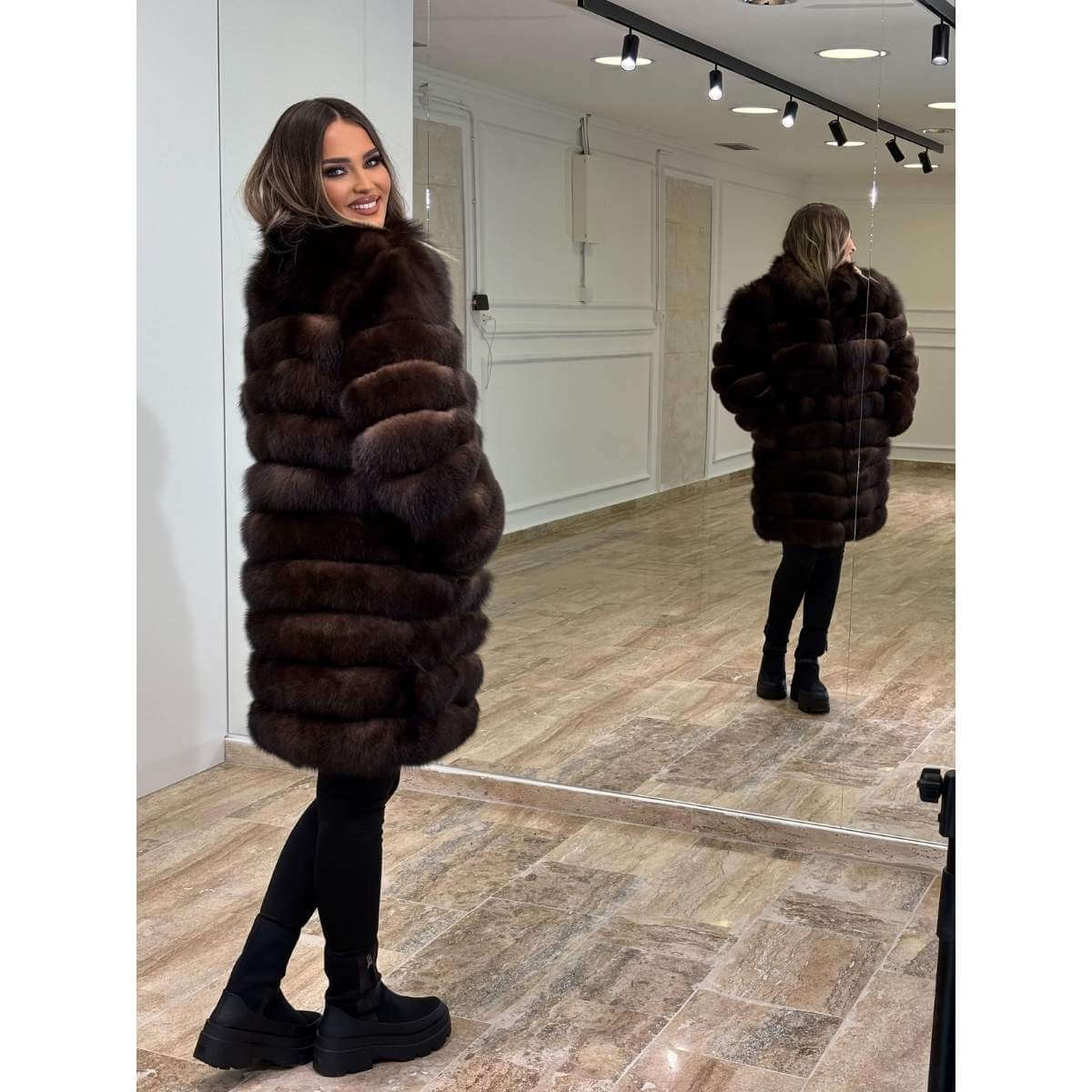 Luksuzna bunda 5u1 bez kapuljače izrađena je od prirodnog krzna lisice, poznatog po izuzetnoj mekoći, gustini i vrhunskom kvalitetu. Njen savršeno krojen model i bogata tekstura krzna pružaju ne samo eleganciju, već i izuzetnu toplinu tokom najhladnijih zimskih dana.
