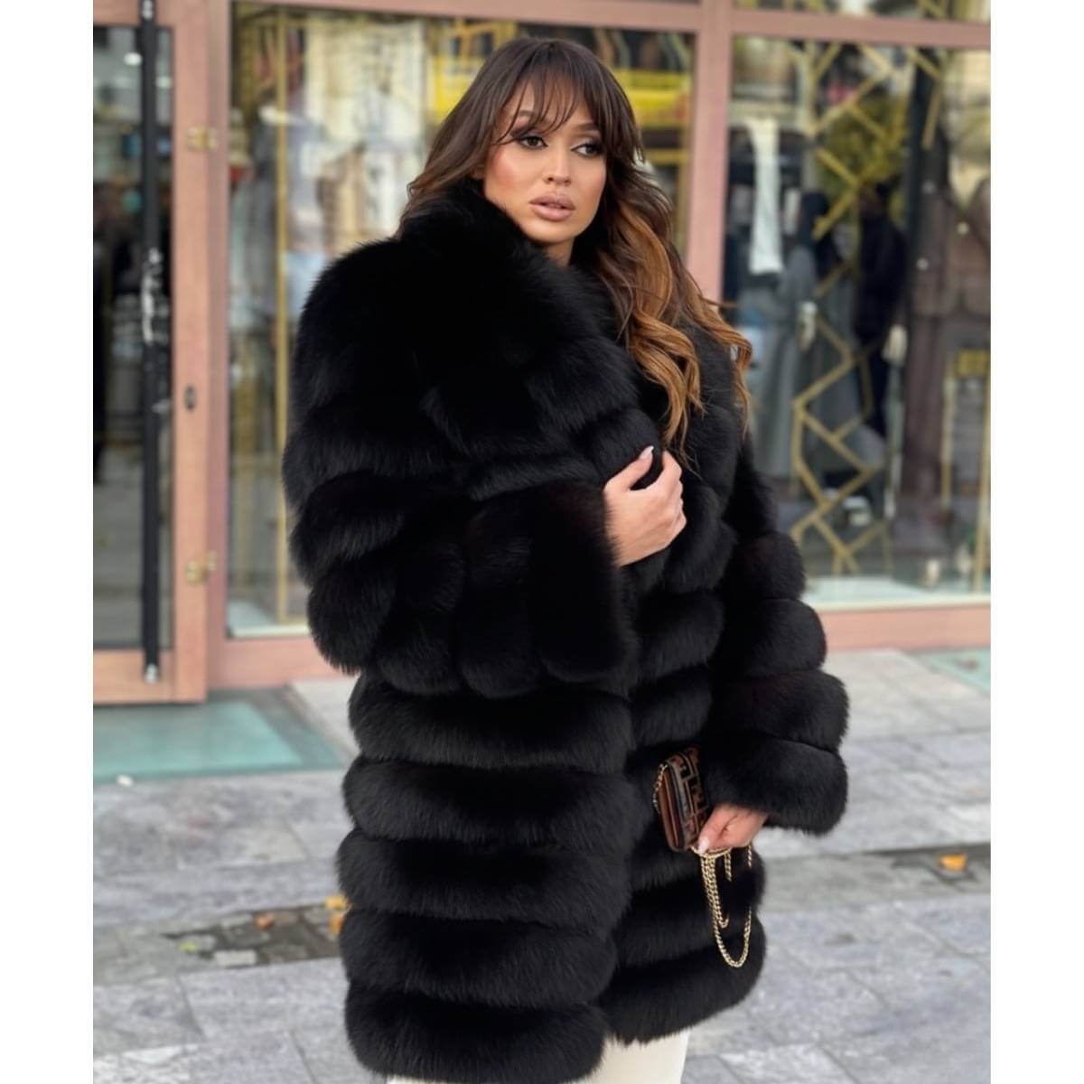 Dostupna je u dve elegantne nijanse, crnoj i braon, koje naglašavaju prirodan sjaj krzna i lako se uklapaju uz sve modne stilove. Bilo da je kombinuješ uz pantalone, čizme, haljinu ili elegantne modne dodatke, ovaj model garantuje topao, luksuzan i otmen izgled.