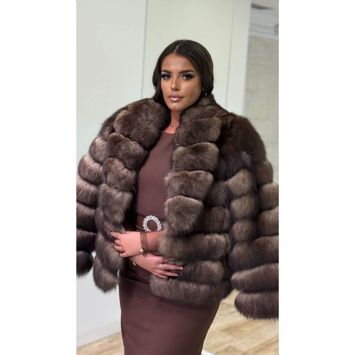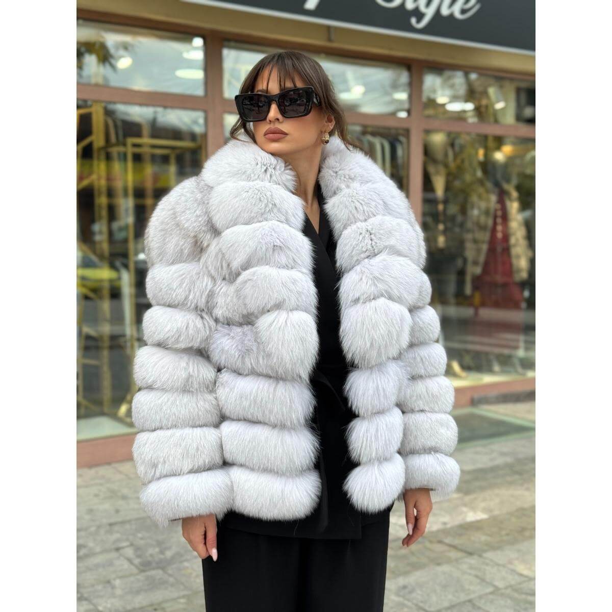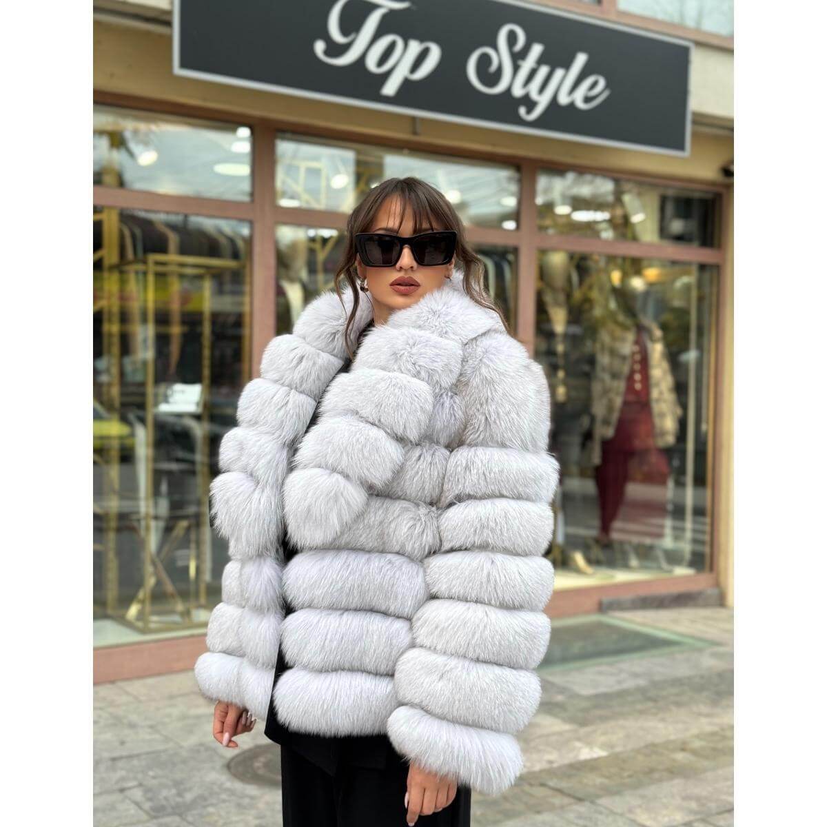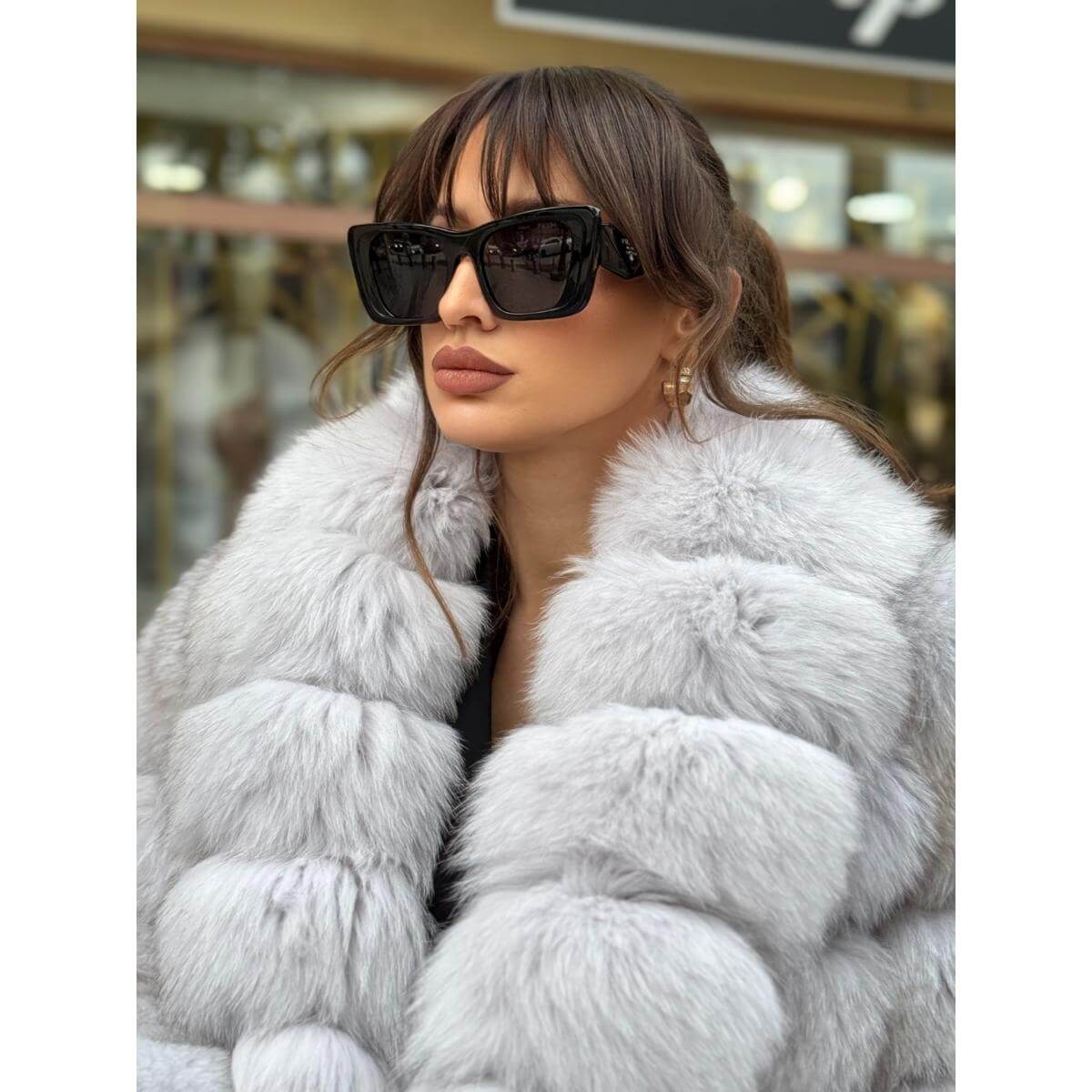 Bunda sa reverima od prirodnog krzna lisice odiše elegancijom, toplinom i sofisticiranim izgledom. Raskošna tekstura i pažljivo oblikovani reveri naglašavaju luksuz i ženstvenost, dok mekani kroj obezbeđuje udobnost i slobodu pokreta. Svetla nijansa unosi svežinu i profinjenost u svaku zimsku kombinaciju i lako se uklapa uz različite stilove.