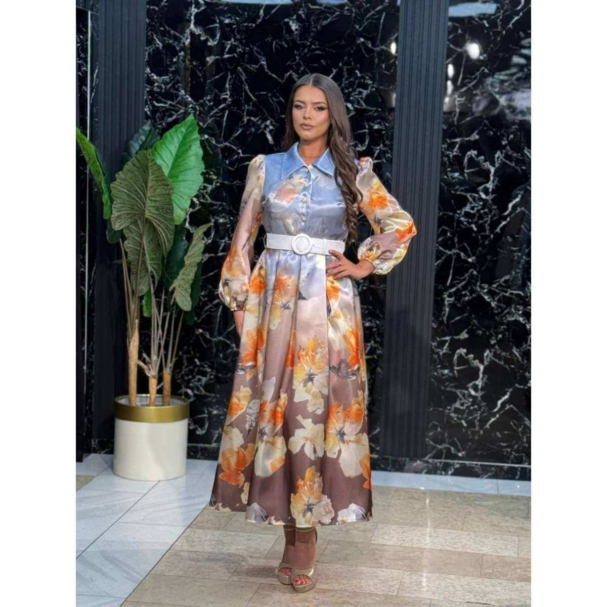 Ova elegantna cvetna haljina sa kragnom savršen je spoj klasičnog kroja i romantičnog dizajna. Izrađena od laganog i prijatnog materijala, haljina pruža udobnost tokom celog dana, dok bogat cvetni dezen unosi svežinu i ženstvenost u svaki stil.