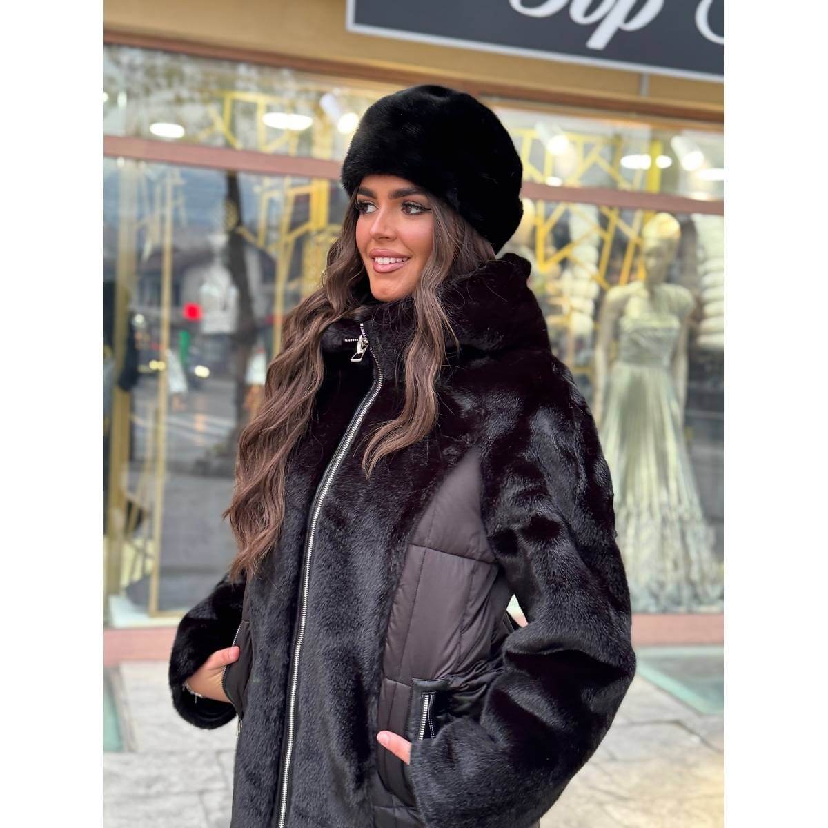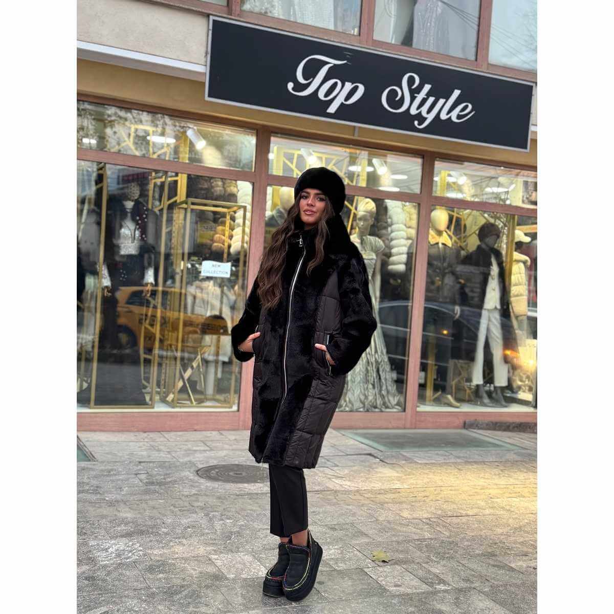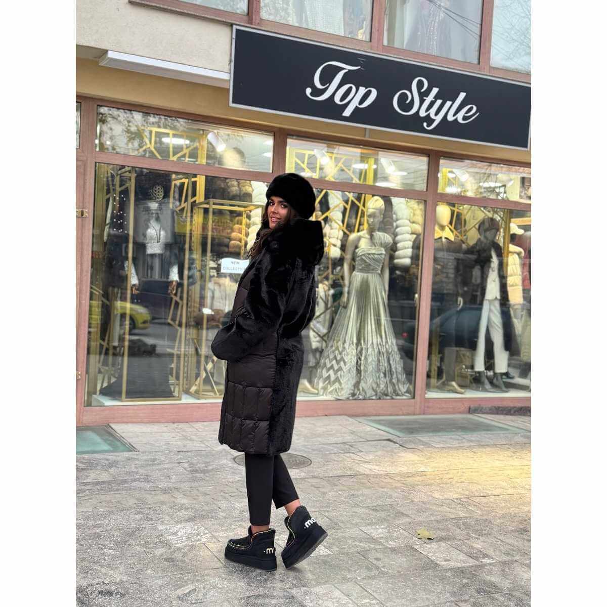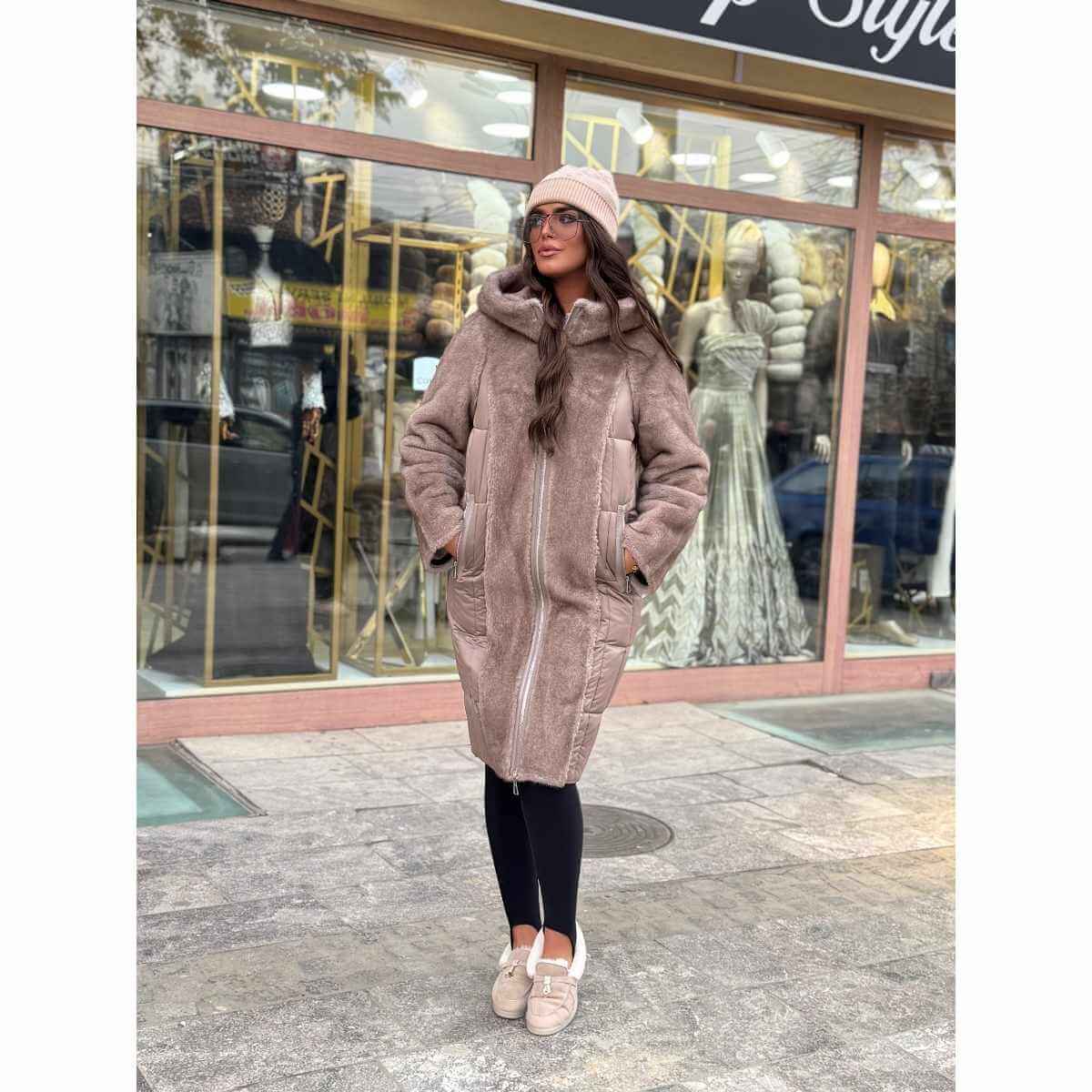 Kopčanje na rajsferšlus, praktični džepovi i udoban kroj čine ovu jaknu izuzetno praktičnom, dok crna ili braon boja garantuje lako uklapanje uz različite modne kombinacije. Idealan izbor za žene koje žele dva stila u jednom komadu i bezvremensku eleganciju tokom zimskih dana.