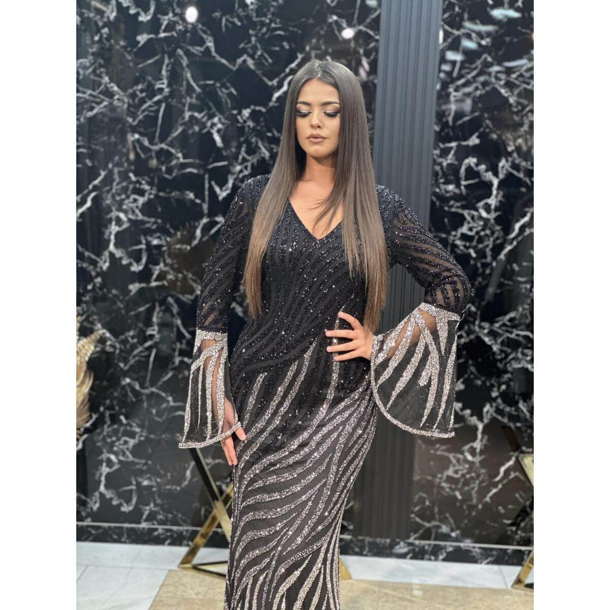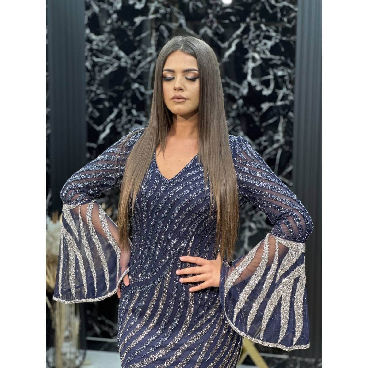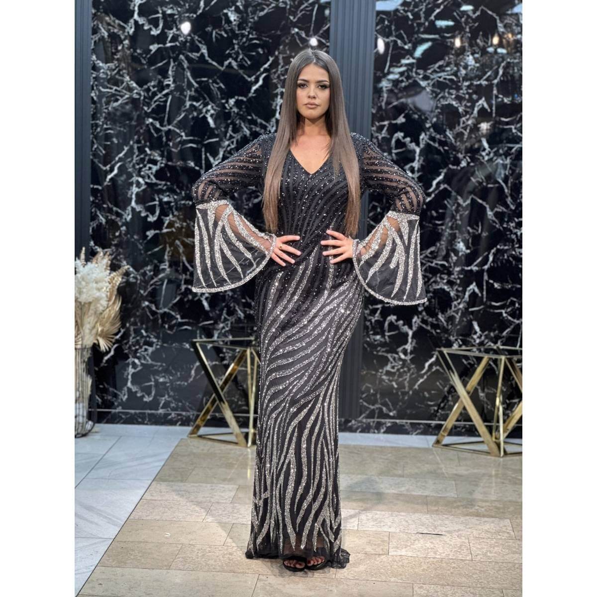 Elegantna haljina ručni rad sa dugim zvonastim rukavima iz Top Style kolekcije iz Novog Pazara odiše sofisticiranošću i luksuzom. Ručno izrađena od kvalitetnog materijala sa pažljivo apliciranim šljokicama, ova haljina se prelepo presijava i ističe svaku figuru. Zvonasti rukavi daju joj poseban, dramatičan izgled, dok uski kroj naglašava ženstvenost i gracioznost.