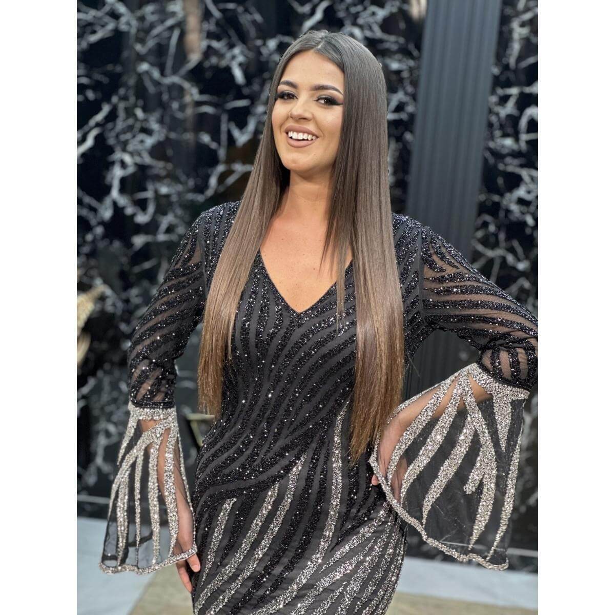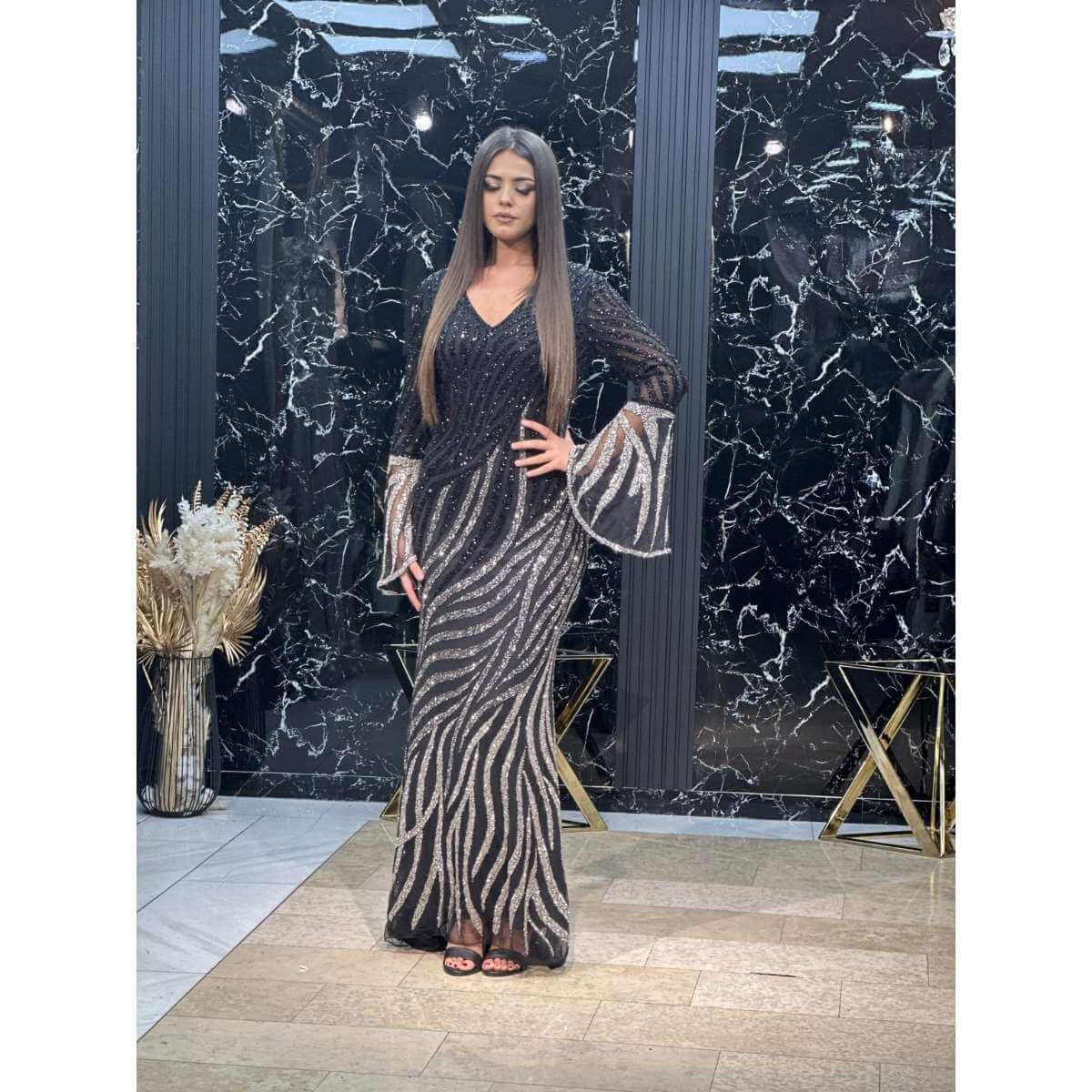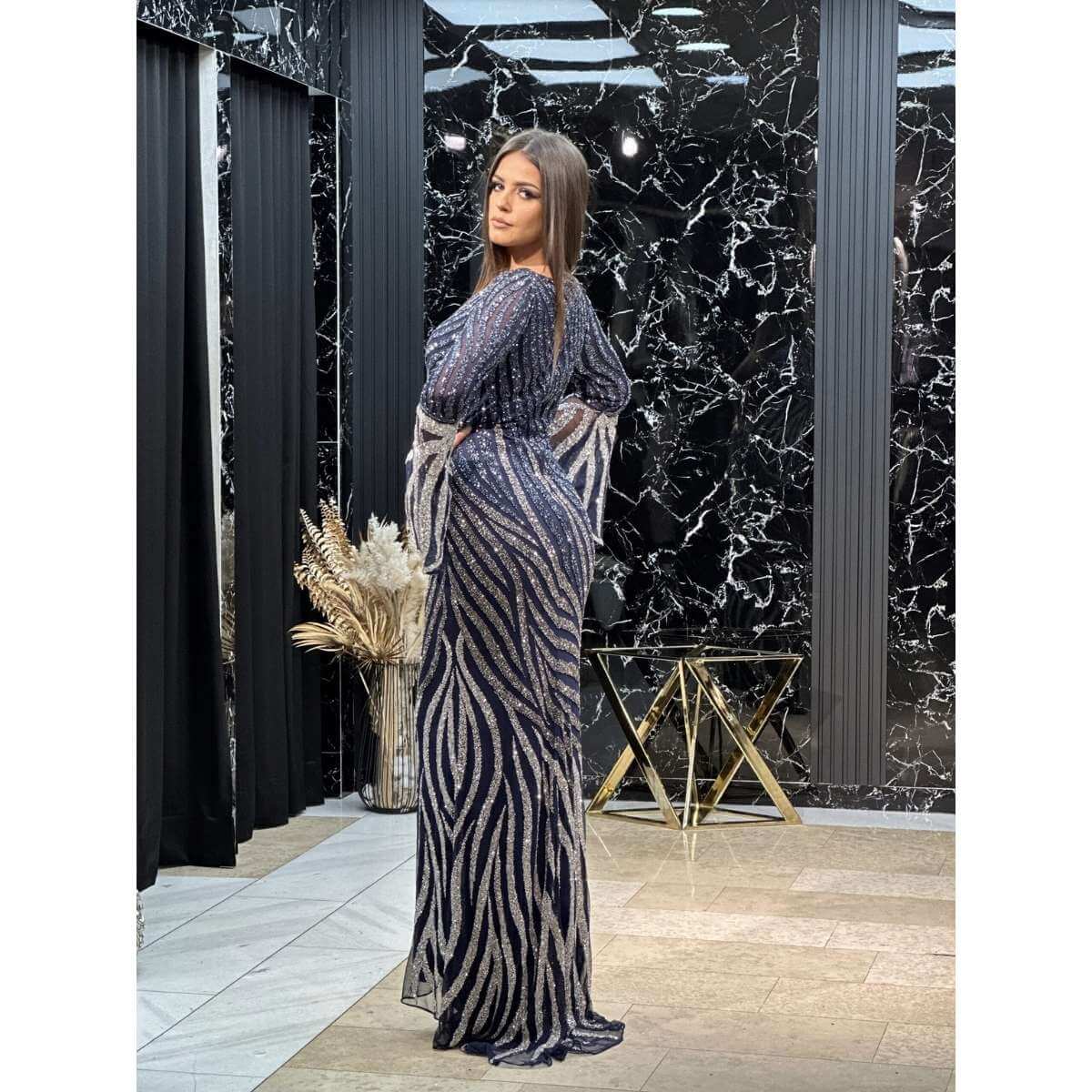 Elegantna haljina ručni rad sa dugim zvonastim rukavima iz Top Style kolekcije iz Novog Pazara odiše sofisticiranošću i luksuzom. Ručno izrađena od kvalitetnog materijala sa pažljivo apliciranim šljokicama, ova haljina se prelepo presijava i ističe svaku figuru. Zvonasti rukavi daju joj poseban, dramatičan izgled, dok uski kroj naglašava ženstvenost i gracioznost.