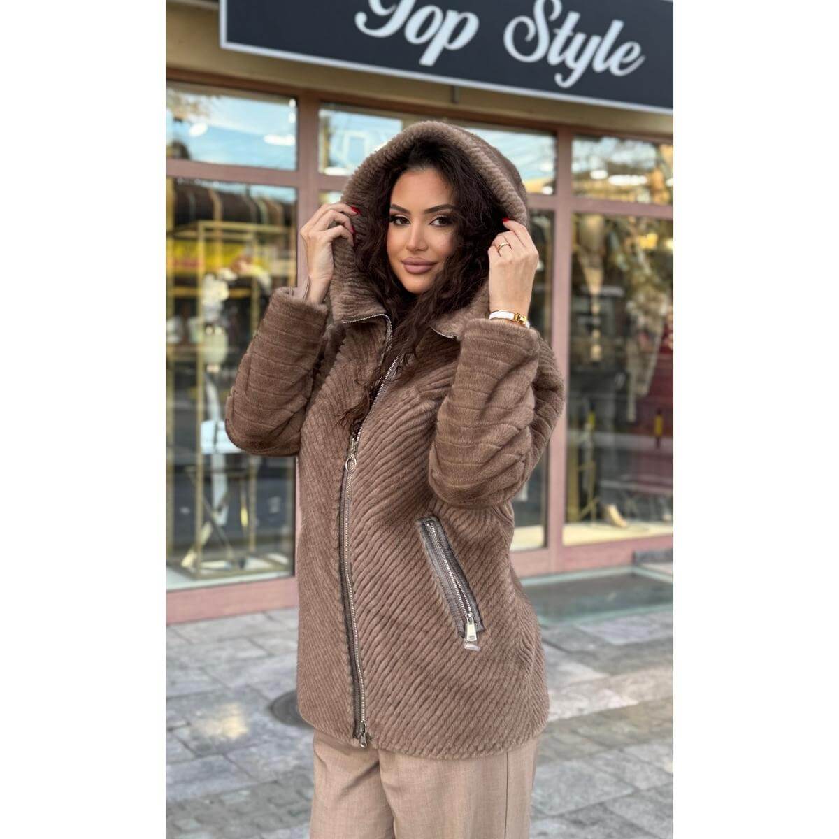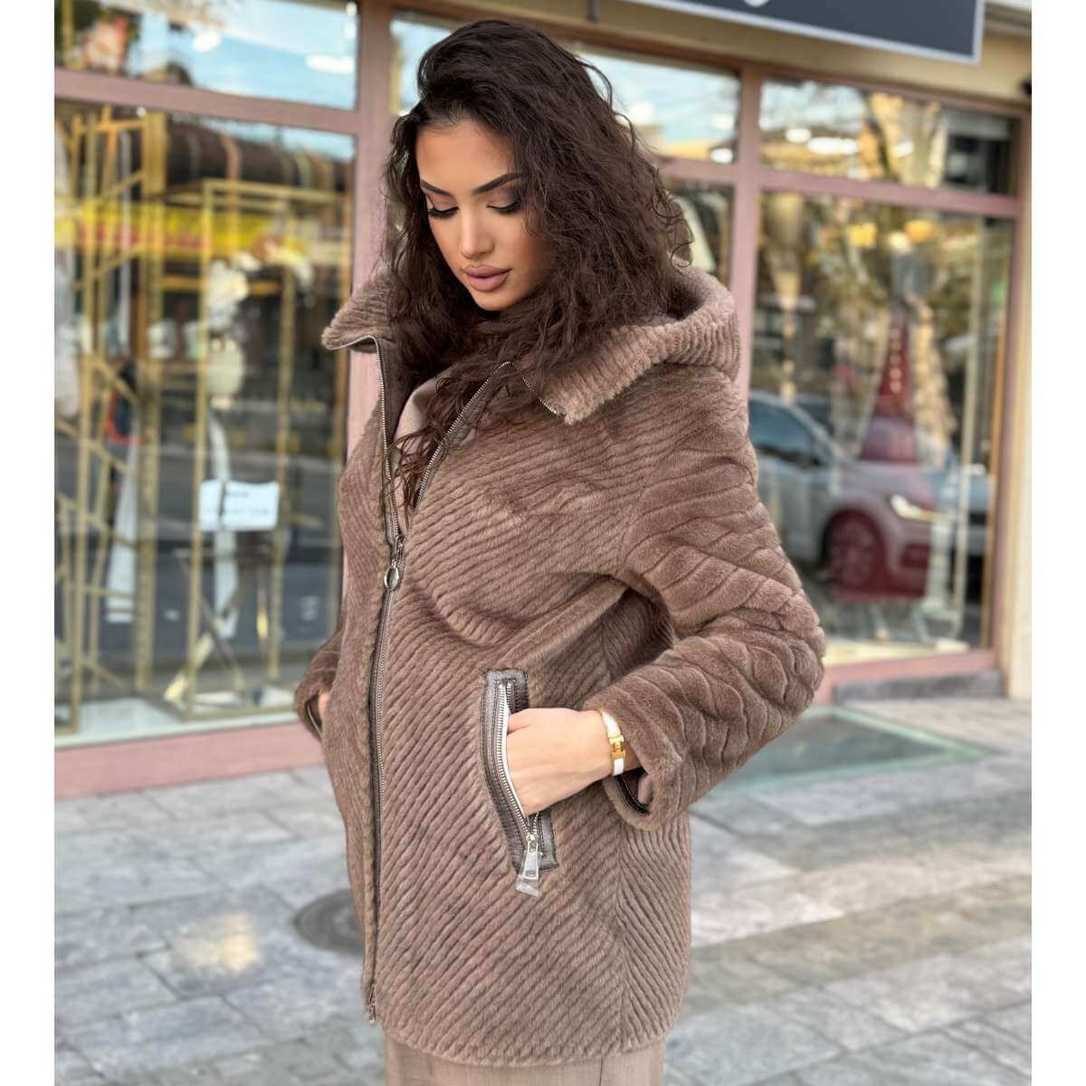 Elegantna i praktična jakna sa dva lica savršen je izbor za hladnije dane. Dizajnirana da ponudi dve različite varijante nošenja, ova jakna kombinuje moderan izgled i vrhunsku udobnost. Spoljašnja strana ima luksuznu, rebrastu teksturu koja daje sofisticiran i urban stil, dok je unutrašnja strana mekana i topla, idealna za svakodnevno nošenje.