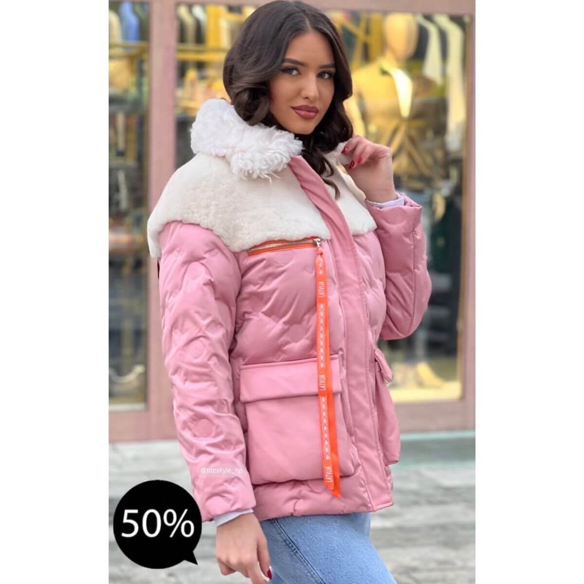 Zimska jakna sa vunenom kragnom i detaljima