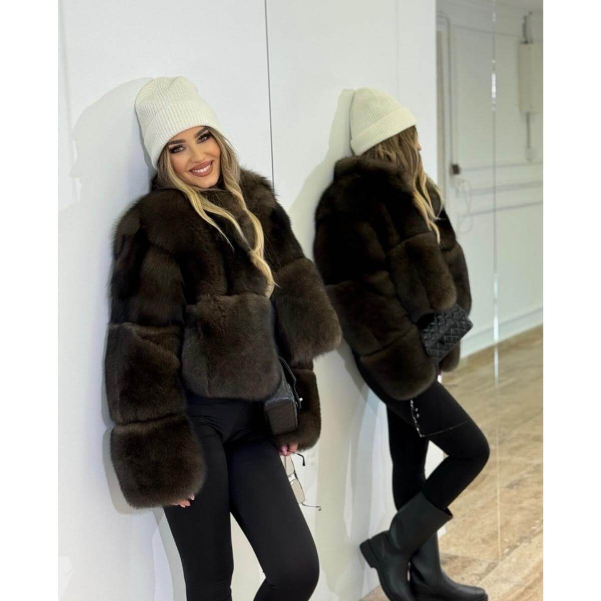 Luksuzna kratka bunda izrađena od prirodnog krzna ističe se bogatom teksturom, savršenom toplinom i modernim krojem. Model je dizajniran tako da pruži upečatljiv i sofisticiran izgled, idealan za zimske dane i posebne prilike.
