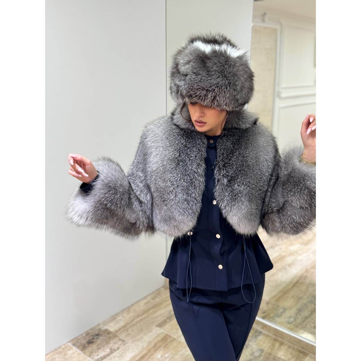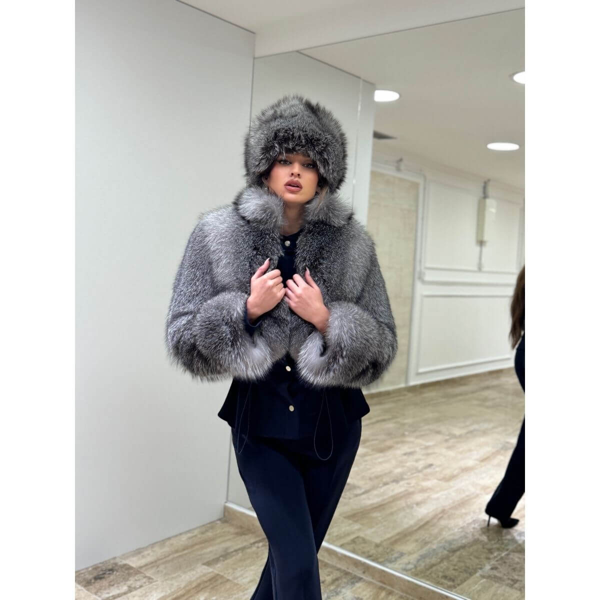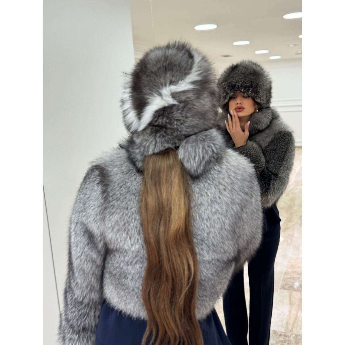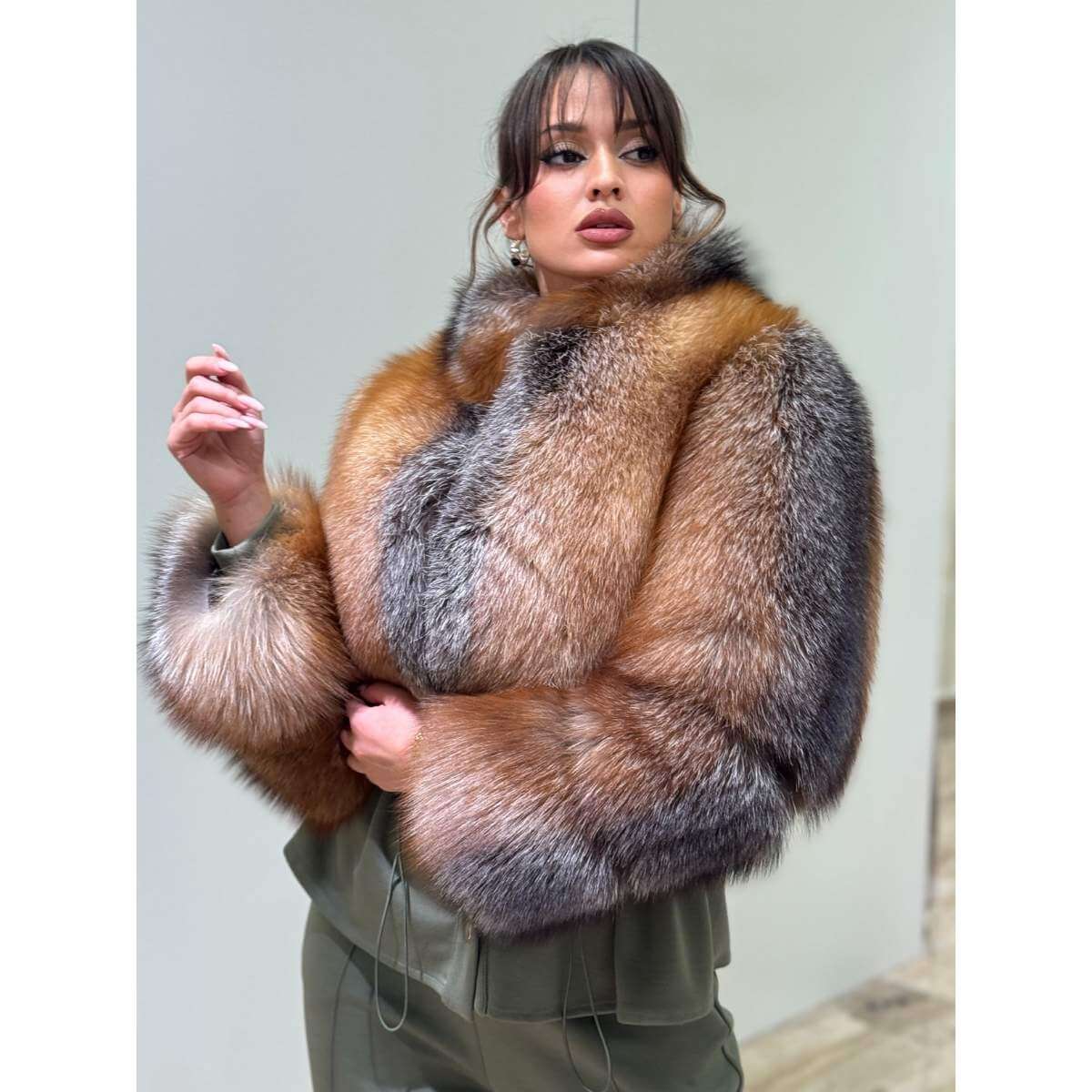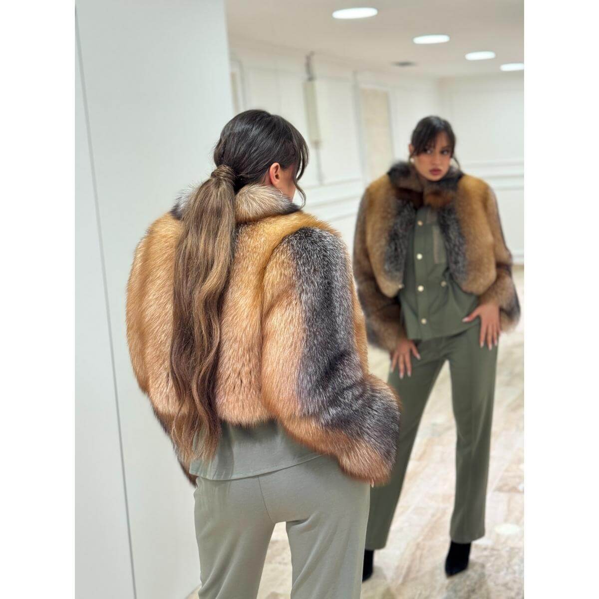 Kroj je pažljivo oblikovan kako bi naglasio figuru i obezbedio ženstvenu siluetu, dok kratka dužina omogućava lako kombinovanje uz elegantne čizme i svečane ženske komplete ili elegantne haljine. Ženska kratka bunda od lisice je idealna za dame koje žele da spoje glamur i toplinu tokom hladnih zimskih dana.