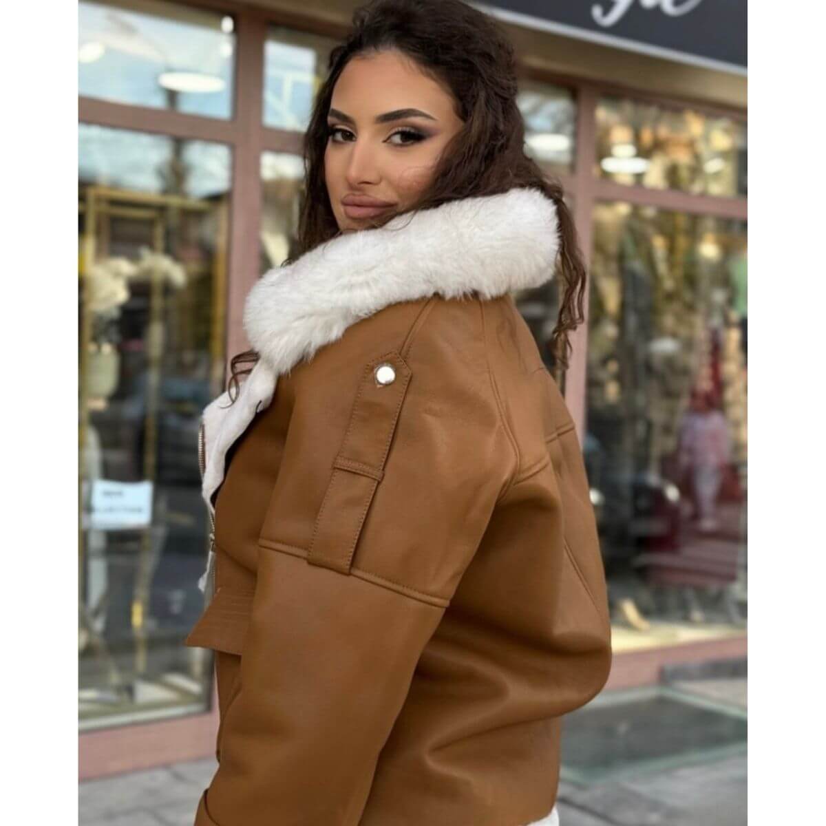 Kratki monton sa belim prirodnim krznom i vunenom postavom predstavlja savršen spoj topline, udobnosti i modernog zimskog stila. Prirodno krzno u beloj boji daje luksuzan i upečatljiv izgled, dok vunena postava pruža dodatnu toplotu i prijatan osjećaj tokom nošenja. Kratka dužina i savremen kroj čine ovaj model idealnim za svakodnevne zimske kombinacije, nudeći praktičnost bez kompromisa na eleganciji.