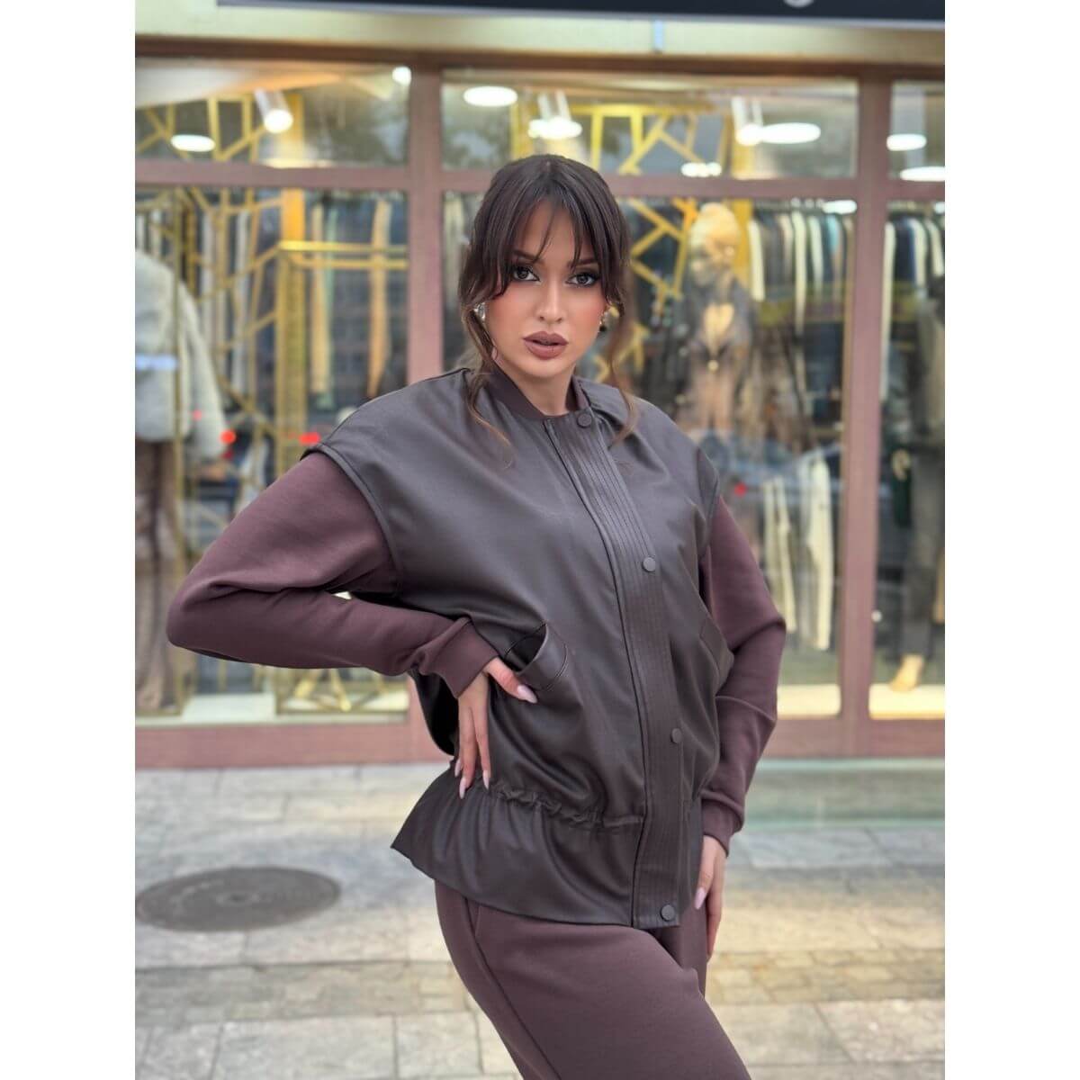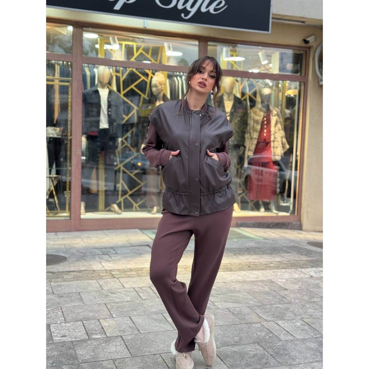 Trodelni urbani set sa prslukom u čokoladnim tonovima