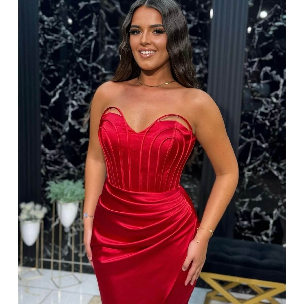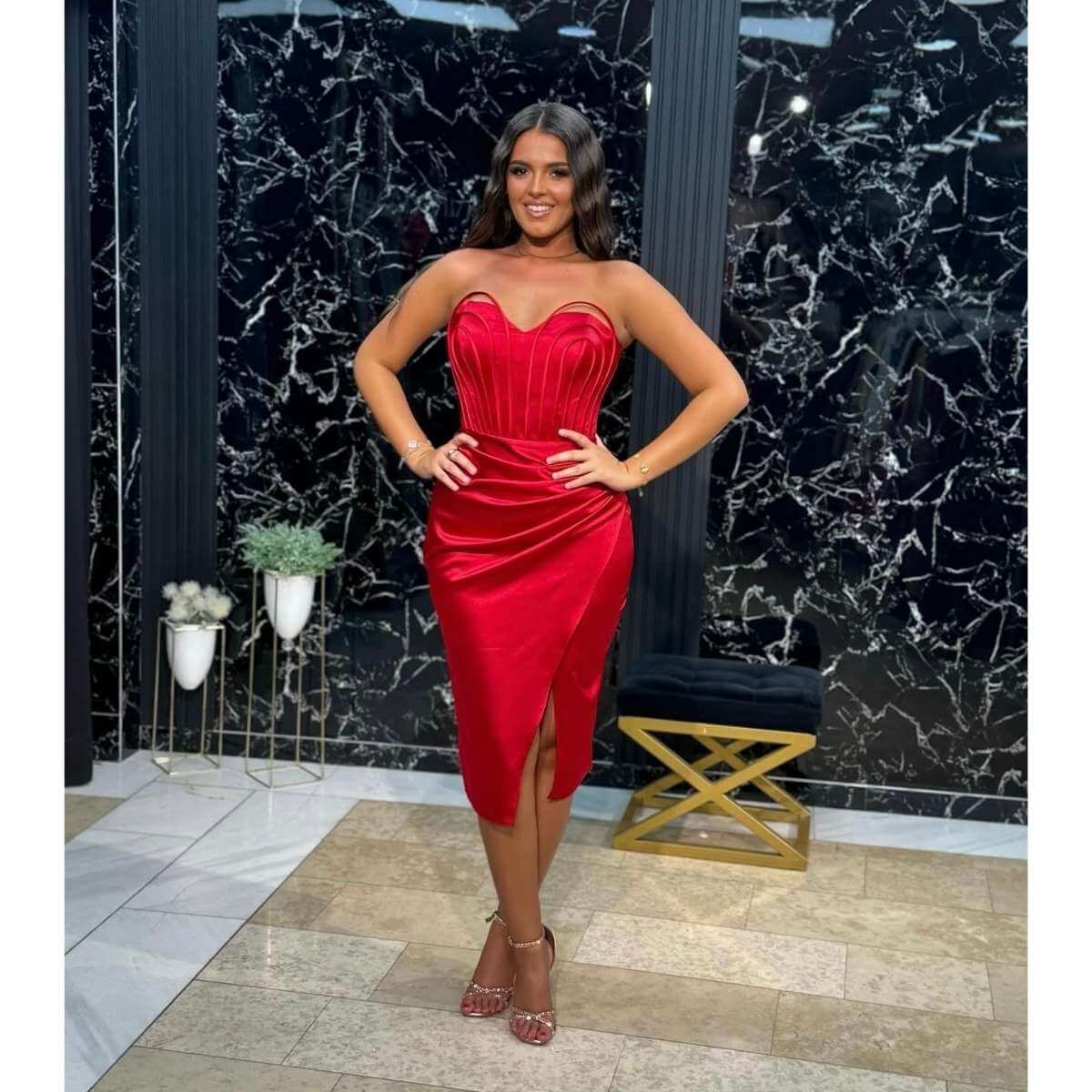 Wave Elegance elegantna haljina upečatljivog kroja sa efektnim talasastim detaljima na predelu grudi koji naglašavaju ženstvenu siluetu. Dužina haljine diskretno prekriva kolena, dok bočni šlic daje dozu senzualnosti i omogućava lako kretanje. Savršen izbor za svečane prilike, večernje izlaske i posebne događaje kada želite da ostavite snažan utisak.