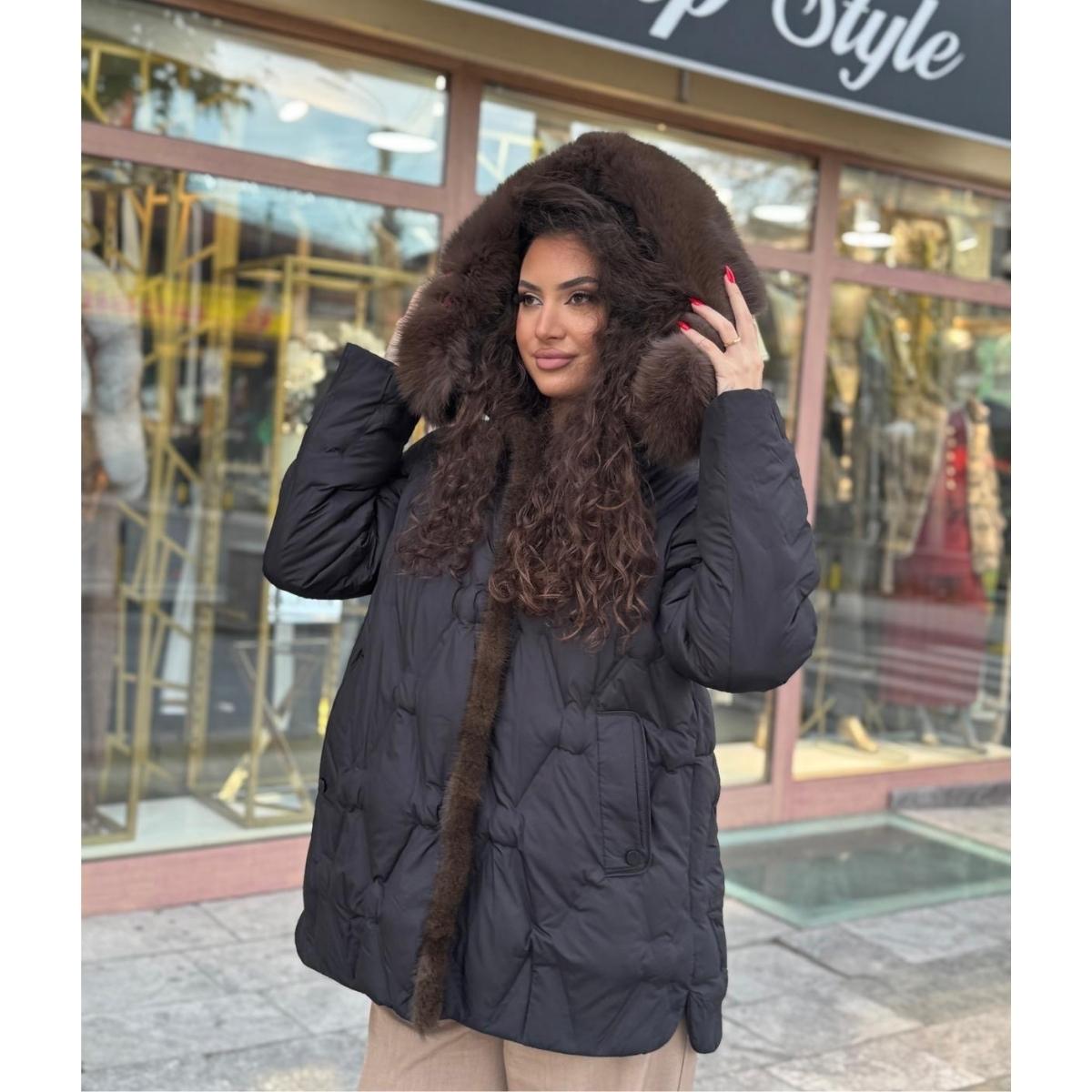 Elegantna ženska zimska jakna u klasičnoj crnoj boji, izrađena za maksimalnu toplinu i udobnost tokom hladnih dana. Model je srednje dužine i poseduje kapuljaču sa bogatim prirodnim krznom nerca u braon nijansi, koje daje luksuzan i sofisticiran izgled. Jakna je lagano punjena, prijatna za nošenje i praktična za svakodnevne gradske kombinacije, dok bezvremenski dizajn omogućava lako uklapanje uz elegantan i casual stil. Idealan izbor za žene koje žele spoj funkcionalnosti, topline i luksuza.