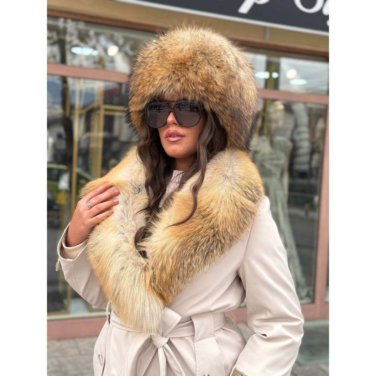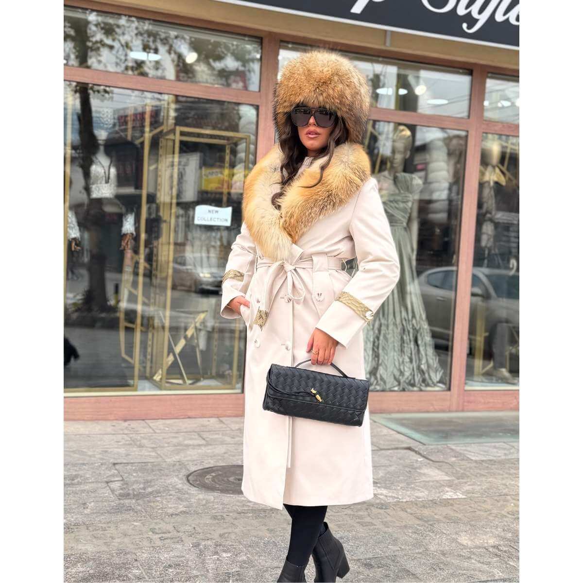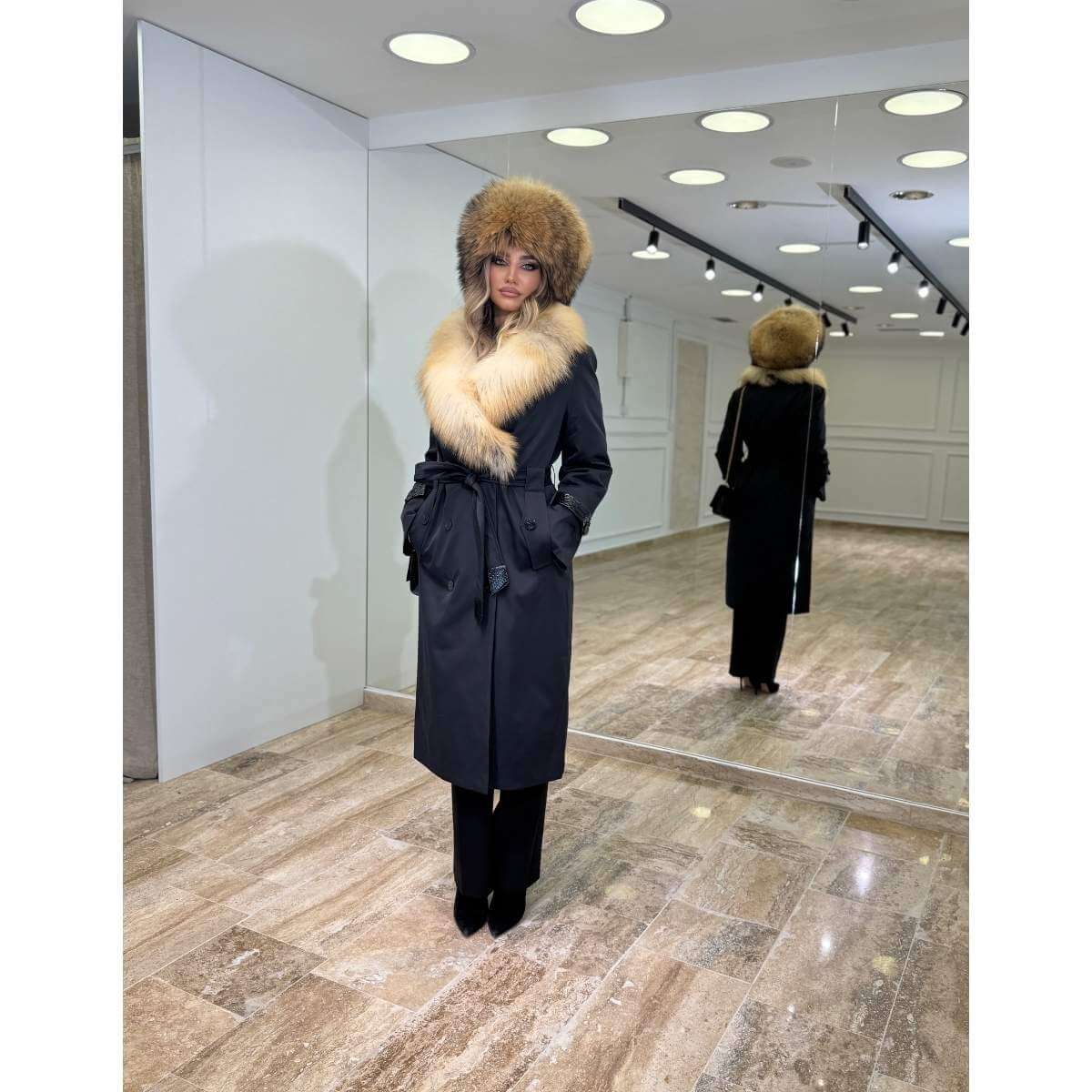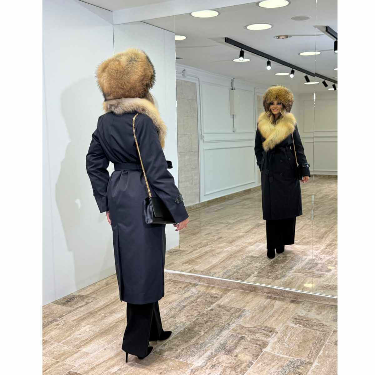 Prirodno krzno oko okovratnika i kapuljače pruža izuzetnu toplinu i zaštitu od hladnoće, dok istovremeno predstavlja upečatljiv modni detalj. Jakna je idealna za zimske prilike, večernje izlaske i elegantne dnevne kombinacije, namenjena ženama koje cene luksuz, stil i kvalitet.