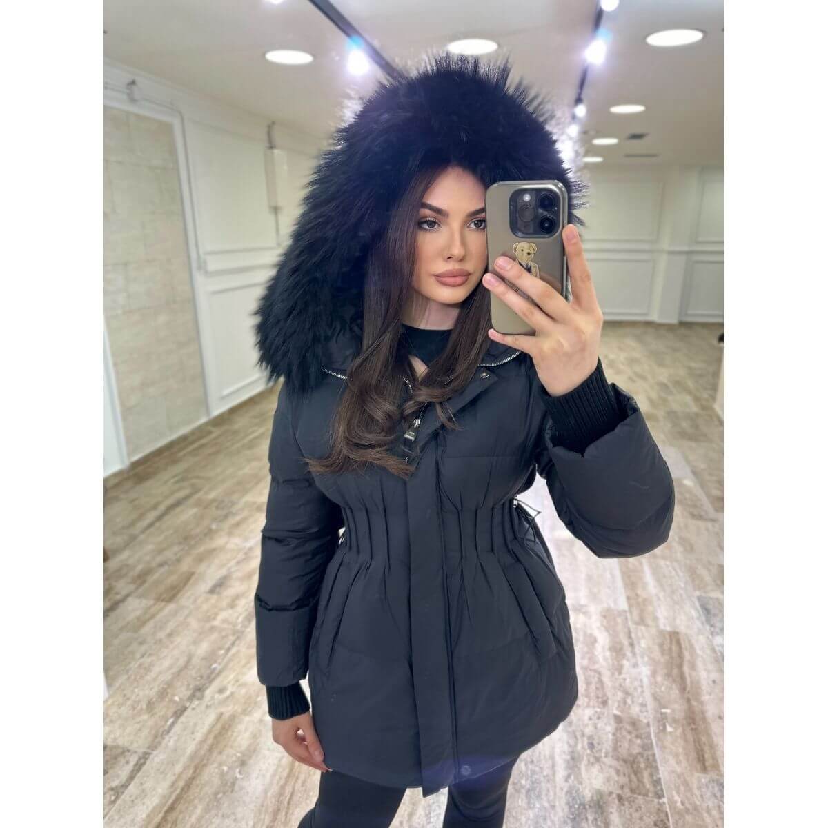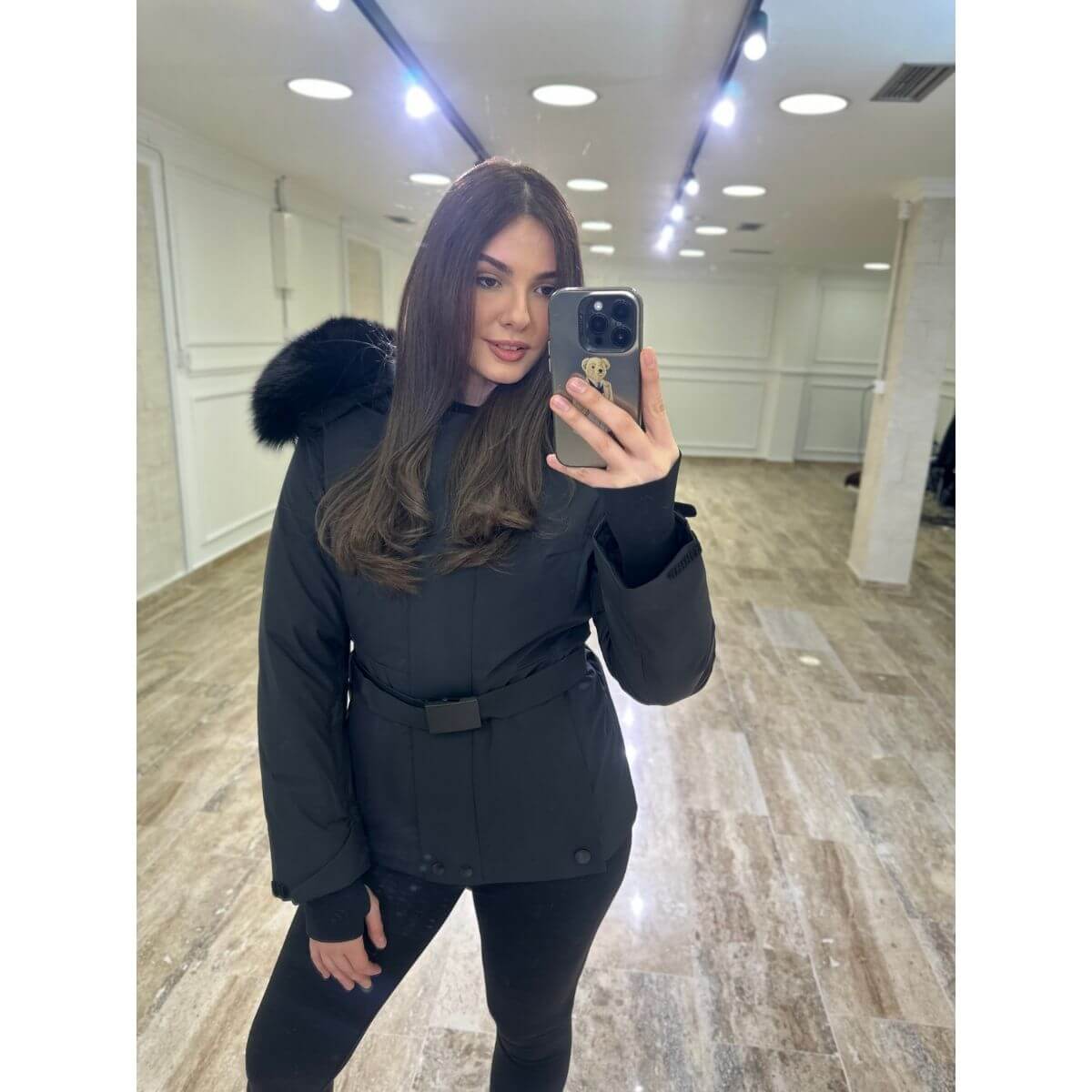 Zimska jakna s krznenim rubom i strukiranim krojem